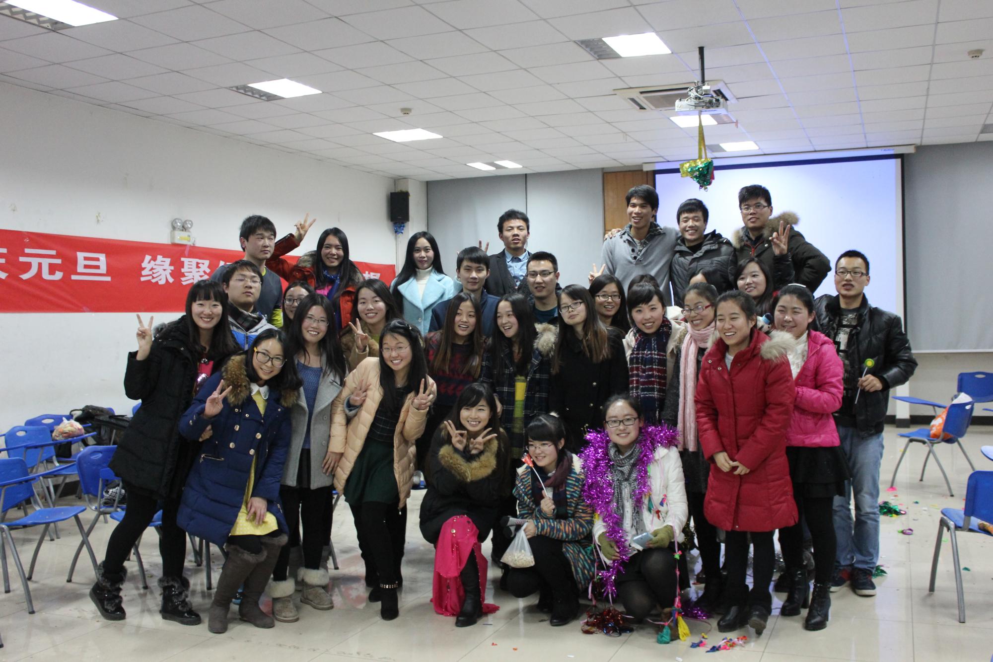 (通讯员 马江娜)2014年12月27日19:00,学院研究生于南校区大学生活动中心116举办了主题为“欢庆元旦,缘聚经管,研续梦想”的元旦晚会,旨在促进师生交流,丰富学生生活。学院党委副书记樊稳老师、团委书记黄成龙老师和经管院100余名研究生参加晚会。晚会开始前,樊稳书记代表学院各位领导老师表达了对全体同学的祝福,祝愿大家学有所成。