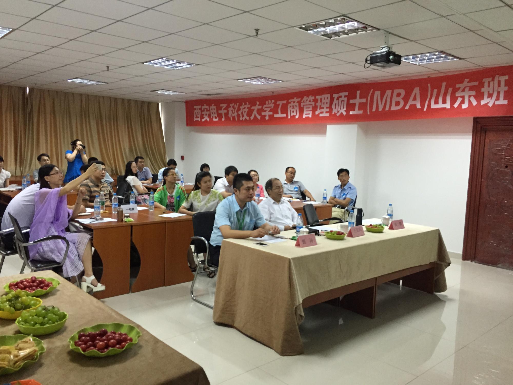 学院院长王安民教授首先致辞,他向2015级MBA山东班的新同学表示衷心祝贺,欢迎他们成为皇冠正规娱乐平台这座有着关荣传统的高校的一员,他引经据典介绍了西电光辉的发展历史,希望在座的同学秉承“厚德求真,砺学笃行”的校训,再接再厉、刻苦努力、不断进取,在知识、能力和品质三方面同步提升。他希望培养的每一个学子都能成为学会感恩、懂得责任和担当的西电人。最后他向2015级MBA山东班的新同学提出三点要求,第一、在学习的时候要根据专业学位教育的特点和要求去学习,要结合自身工作实际去学习、去思考,去应用、去创新;第二、处理好单位工作、家庭生活和在职学习三者之关系,要学有所获,学有所用;第三、要快速适应角色转换,正确进行角色定位。