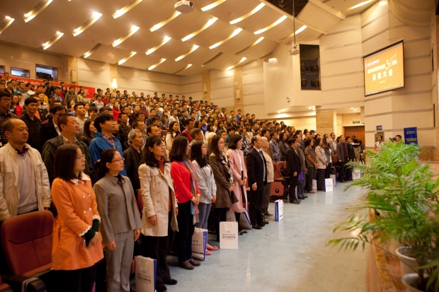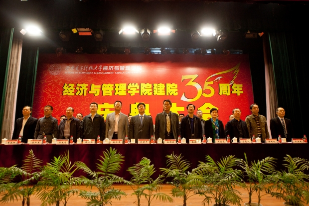 在整齐嘹亮的国歌之后,刘延平首先在致辞中代表学校向学院建院35周年表示热烈的祝贺,向学院全体师生致以诚挚的问候和良好的祝愿。刘延平指出,学院是学校办学格局中非常重要的组成部分。35年来,学院谱写了一曲自强不息,顽强奋进的壮丽诗篇,为学校学科体系的完善和办学水平的提升做出了重大贡献。学院率先提出综合改革方案,推进综合改革试点,闯出了一条属于自己的发展道路,产生了一批具有重大影响力的理论成果和现实成果,打造出独具西电特色的经济与管理学科。站在35周年院庆的新起点上,学院应当团结一心,奋进创新,共同开创更加美好的未来。