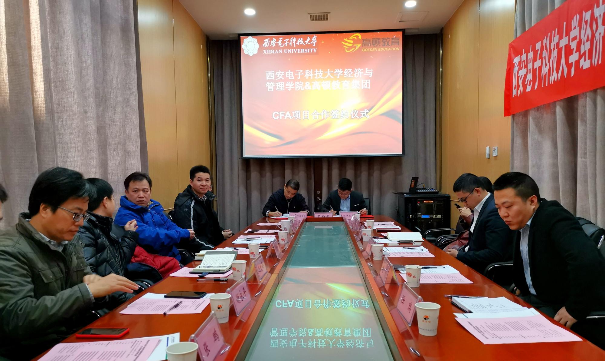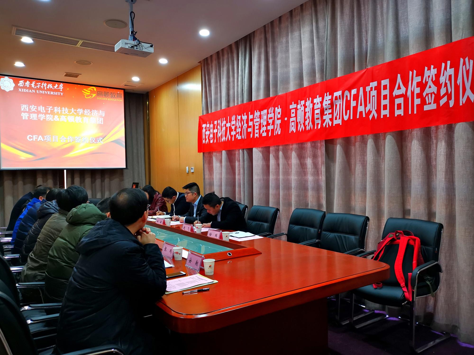 上午9:00,签约仪式在皇冠正规娱乐平台南校区信远楼举行,由学院柴建副院长主持。学院李耀平书记,樊稳副书记,学院MBA办公室负责人张鹏主任,学院教学专项负责人谢永平主任,皇冠正规娱乐平台产业集团代表陈士兵老师,学院国际化专项负责人李金老师和学院本科辅导员安翔老师,高顿教育集团副总裁、高校事业部总经理杜敏,高顿教育集团高校事业部西部大区总监李昌鑫,高顿教育集团高校事业部西北区销售经理李红红、刘全红、赵飞以及高顿教育集团高校事业部西北区招生主管任瑞都出席了本次仪式。