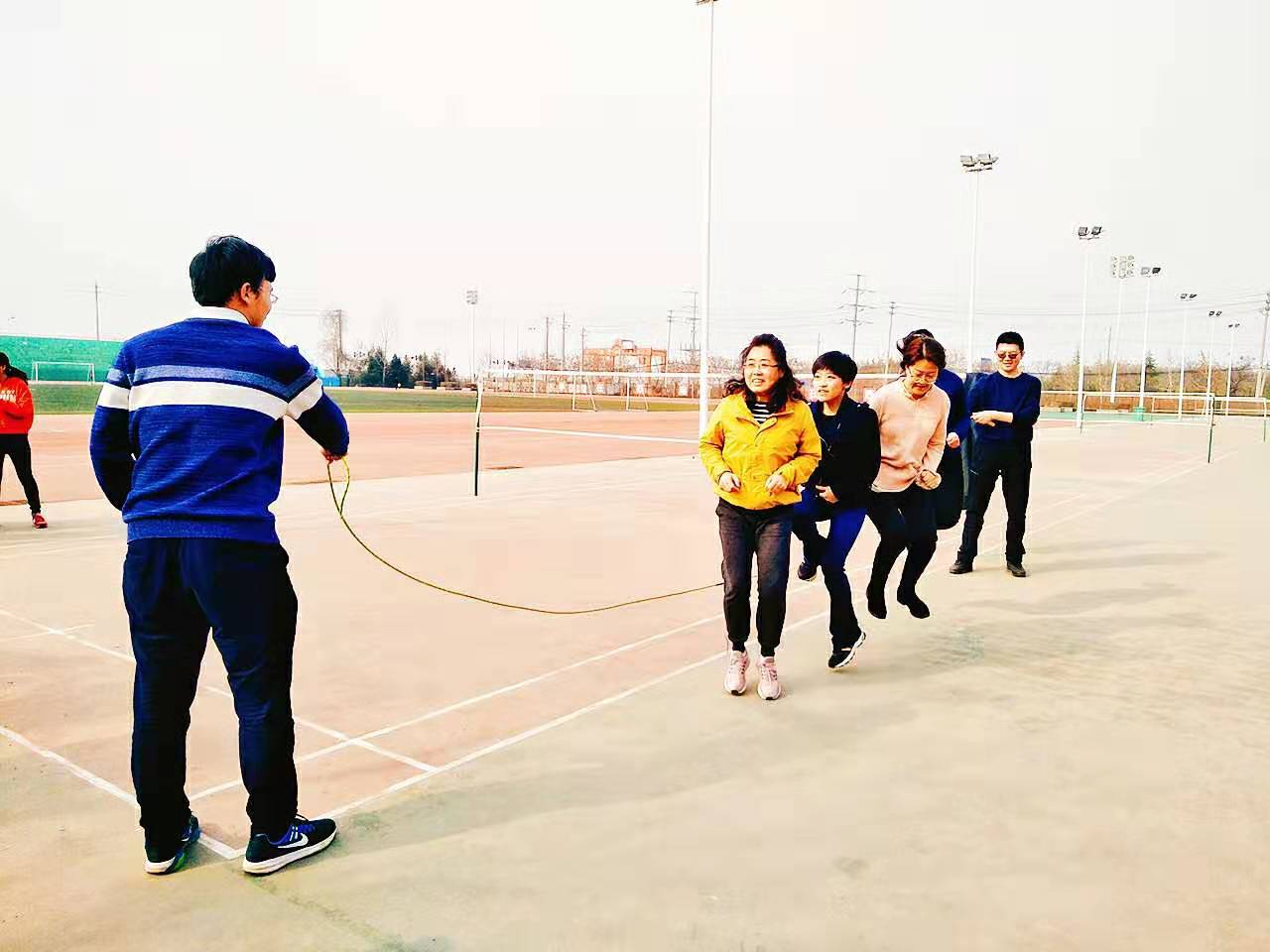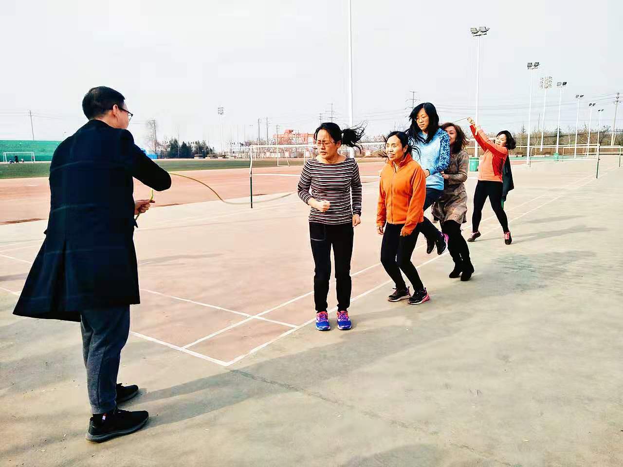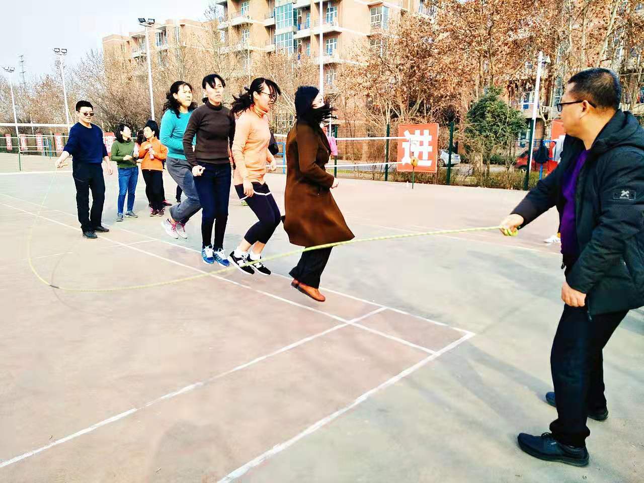 仔细一看,参加比赛的不是学生,而是学院的教师们。组织这次比赛,是为学院女教师庆祝马上要到来的3.8妇女节,让平常在一线工作的老师们放松一下,都能展现自己的魅力。别看老师们平时上课的时候端庄严谨,跳大绳的时候课时活力满满呢。来参赛的由学院机关和各个系的多名老师,大家自行分为几个小组,规则是每个小组至少4人上场比赛,在三分钟内跳的次数最多的小组获胜。