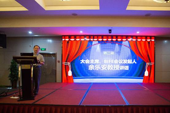 余乐安介绍了BIFE发展历程,并指出,BIFE主要研究将人工智能在经管领域中的应用与结合,为金融、商务等行业服务。李建平介绍了此次活动的参与情况,在参会人数、投稿数量等方面实现了规模突破。