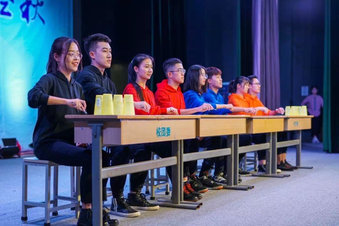 精彩纷呈的节目随之上演。在大家热情的欢呼声中,2019级新生辅导员安翔老师登台献唱,为大家带来了一首李健的《异乡人》。2019级本科各班班委带来的节目《你的杯笔》将penbeat与杯子舞完美结合,令在场同学眼前一亮,一次次敲打与音乐的融合,碰触的是内心,一盏盏杯中的亮光,点亮的是远方;《歌曲串烧》激励大家心怀最初梦想不断奔跑,创造属于自己的美好未来;魔术《消失的水》精妙绝伦,诡谲复杂的技巧幽默风趣的语言引得观众连连叫好;吉他弹唱《小半这一生关于你的风景》在低吟浅唱琴弦交错中将少年心事娓娓道来;朗诵《以梦为马》在9位研究生掷地有声的演绎中将对梦想的不懈追求和披荆斩棘的决心展现的淋漓尽致;舞蹈《芳华》和韩风舞蹈《芒种》用截然不同的两种风格展示了青春活力;歌曲《手心的蔷薇》表演者高超的歌唱技巧令观众仿佛置身于童话世界;小品《四大才子招亲记》惊艳的扮相,绝妙的台词,演员们富有张力的表演令人捧腹连连,叫好声不断;配音秀《声临其境》用声音演绎情感,无论是王者荣耀的千变万化还是亮剑的催人泪下,配音者的变化多端惟妙惟肖的音色赋予了每个角色生动的灵魂。