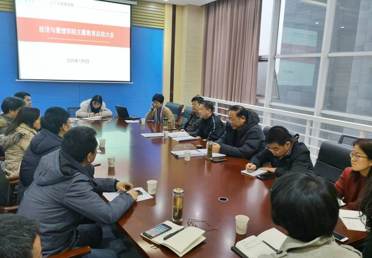 谢军占进行总结发言。他指出学院广大教职工及学生党员干部要以主题教育为新的起点,坚持把“不忘初心、牢记使命”作为加强党的建设的永恒课题和全体党员、干部的终身课题,持续推进“不忘初心、牢记使命”。应充分发扬西电红色基因优良作风,紧扣立德树人根本任务,不断增强教育报国的责任感和使命感。学院应把主题教育的成果转化到学院的发展管理上去,有担当作为和直面问题、正视问题的勇气,在制度完善、学科发展、队伍建设、科研攻关、专业调整、MBA建设发展、校友捐赠上持续发力,充分了解教育部和学校政策,发挥院设委员会智库与民主决策作用,要“走出去”拓宽发展道路,加强内外宣传,助力学院各方面事业长足发展。2020年是学院建院40周年和第五轮学科评估重要契机,学院应提前布局,战略谋划,分工协作,勇于担当,谱写新时代奋进之笔。