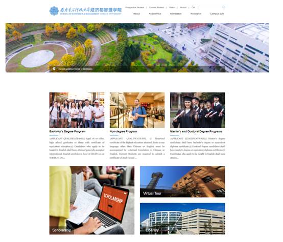 本次经管院英文网站上线,更新的内容不仅包含学院基础信息及学院教师团队信息,还针对不同访问对象设立多个访问窗口。如针对“未来学生”,涵盖了学校概况、学院简介、校园生活、申请资格介绍等;针对“当前学生”,展示了学校当前学期校历、课表、奖学金申请及校园活动和新闻;在“校友”窗口,可以查看知名校友介绍、校友新闻及捐赠信息;从“游客”窗口进入,可以了解到学院概况、国际生项目具体信息及教师团队介绍。