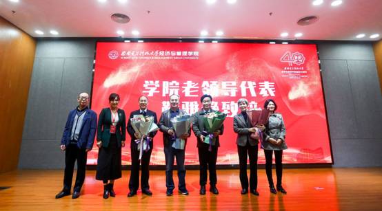 春华秋实,不仅仅是一个萌发、生长、收获的轮回,更是一个开创、继承、更迭的过程。谢军占向参会嘉宾介绍学院情况,总结历史,展望未来。他代表学院向参加本次大会的所有嘉宾表示欢迎,对长期支持学院建设与发展的各界宾朋表达感谢。他用四十年“海纳百川”总结学院历史发展阶段,感谢为学院发展做出贡献的老一辈领导和教师;用四十年“立德树人”介绍学院在学科发展、专业建设、教学改革、科研攻关、师资队伍建设、对外联络合作等方面取得的长足进步;用四十年“砥砺奋进”激励着学院全体师生继续奋斗,不断提升学院社会影响力。谢军占指出,近几年,学院深化党建与业务相融通,紧抓“双万计划”建设契机,坚守科研为社会服务理念、坚持教育现代化推进国际化合作步伐,各项事业蓬勃发展。信息管理与信息系统专业入选国家级一流专业,工商管理专业入选省级一流专业,省部级获奖数量不断增加,省部级、地市级、校级科研平台建设有力,鼓励学科交叉融合,打造了两个省级高校青年创新团队,主动服务“一带一路”倡议,国际合作和国际教育在数量和质量上大幅提升。