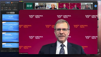 庞普林商学院院长Dr. Robert Sumichrast、管理系主任Dr. Devi Gnyawali代表商学院致辞。他们介绍了商学院的发展历史,人才培养、师资力量、科研力量,对社区、社会、人类发展的服务的关注,他们也回顾了两个学院从2006年开始的科研合作与人员交流,项目的长期推进,对项目的期待与承诺。他们还激动地分享了在会议前一日(11月17日)发布的Princeton Review 2021本科创新项目排名中,弗吉尼亚理工大学排名为25,这一优异成绩的取得是商学院在创新创业方面的长期努力的结果:弗吉尼亚理工大学的企业家中心(Apex Center for Entrepreneurs)设在商学院,主要是管理系在帮助运行。