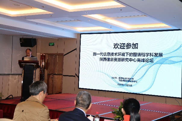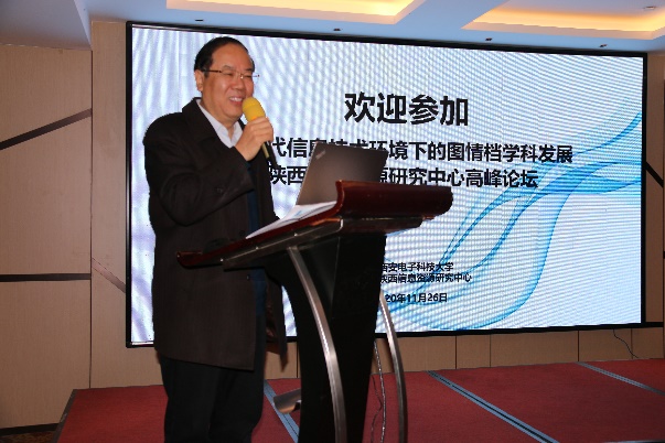 为推动陕西及西部信息资源研究、增进领域同行交流与合作、逐步提升我校“图书情报与档案管理”一级学科发展及平台建设水平,2020年11月26日,由皇冠正规娱乐平台主办,陕西信息资源研究中心、皇冠正规娱乐平台、科学数据管理与区域政策研究中心联合承办的“新一代信息技术环境下的图情档学科发展——陕西信息资源研究中心高峰论坛”在西安长征华美达酒店隆重举行。应陕西信息资源研究中心主任赵捧未教授邀请,中国人民大学冯慧玲一级教授、中国科学院战略发展研究院冷伏海研究员、南京大学朱庆华教授、中山大学曹树金教授、武汉大学安璐教授、西北大学杨九龙教授、陕西省科学技术情报研究院李鹏副院长、张秀妮主任等专家学者参加了本次论坛。