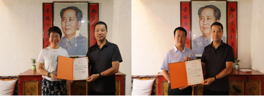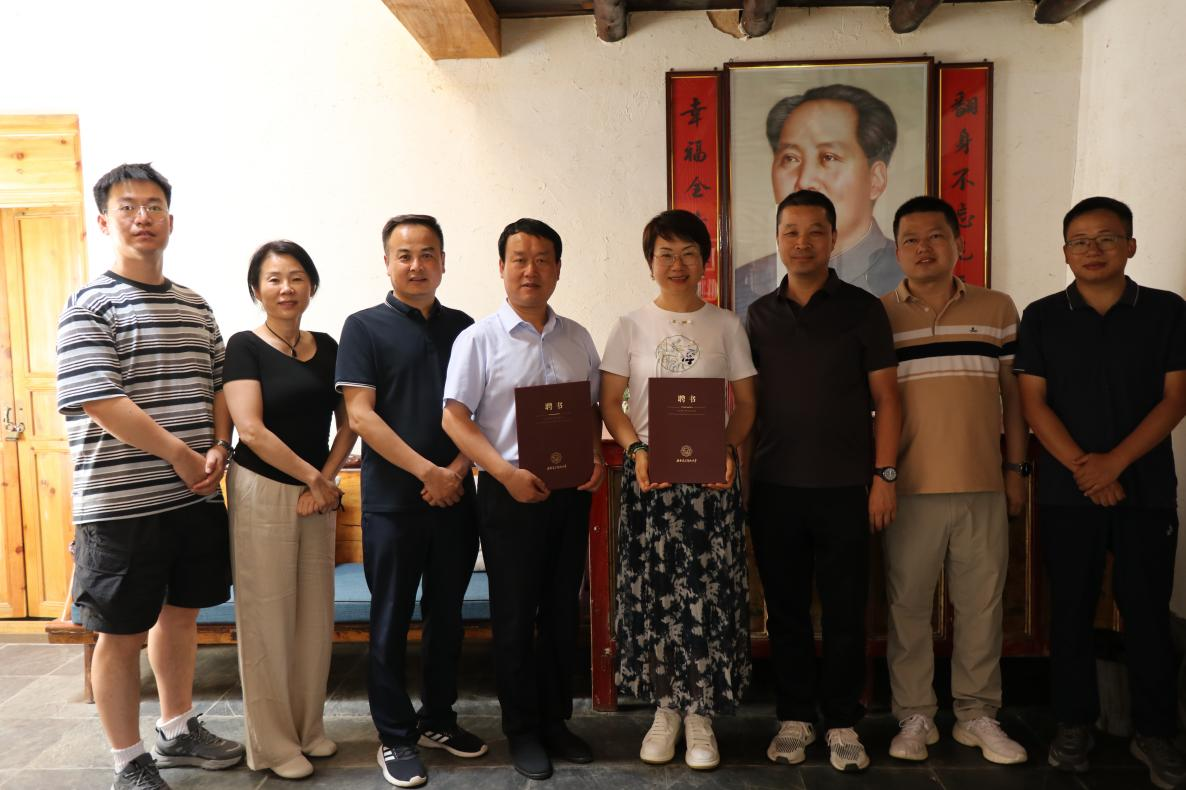 上午参访结束,双方进行了座谈交流。杜新选代表蓝田县灞源镇致辞,对参与本次活动的人员表示热烈欢迎。李耀平强调了“弘扬革命精神,助力乡村振兴”的重要性。他提到,作为党员,要始终牢记“全心全意为人民服务”的宗旨,传承革命精神,助力中国梦的早日实现,让革命先烈的精神在新时代焕发出更加耀眼的光芒。在随后的交流中,双方就校地支部共建、校地产学研合作等内容进行了探讨,并初步达成了合作意向。李耀平为杜新选、王丽颁发了企业导师聘任证书。